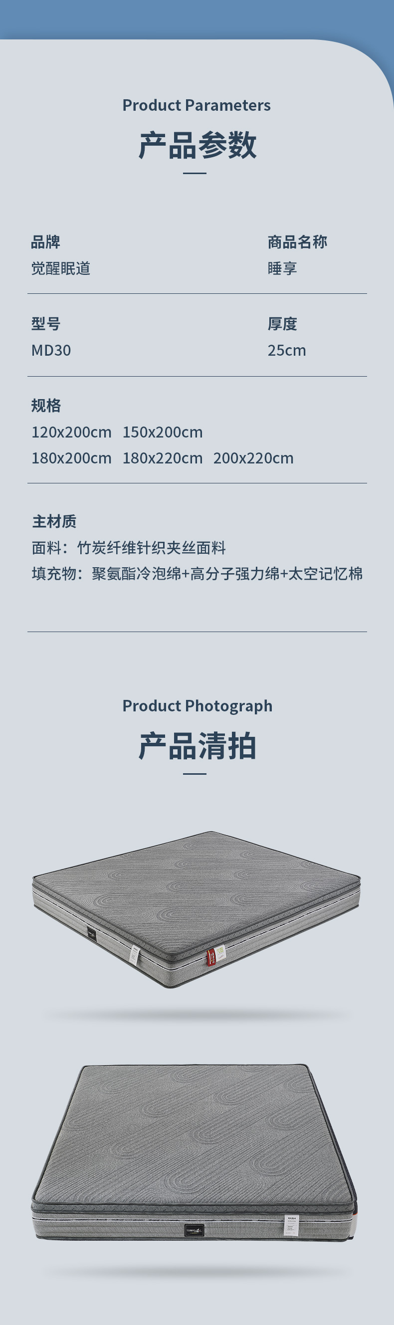 MD30眠享 厚度:25cm 睡感:特軟50% 指導價:6899.00元