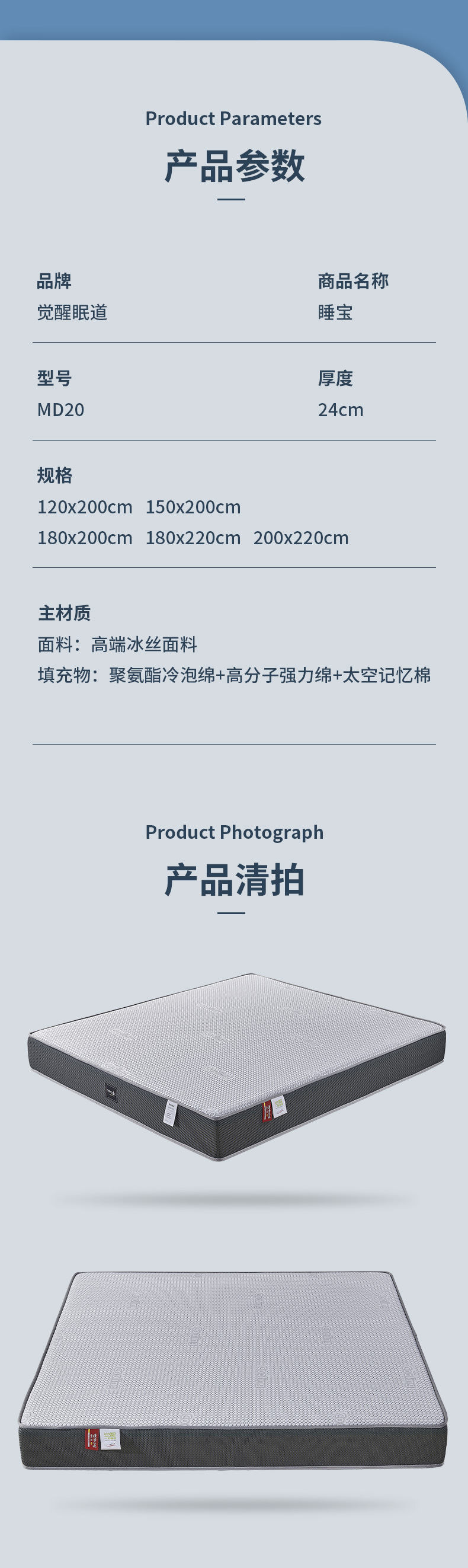 MD20睡寶 厚度:24cm 睡感:軟65% 特軟50% 指導價:6899.00元