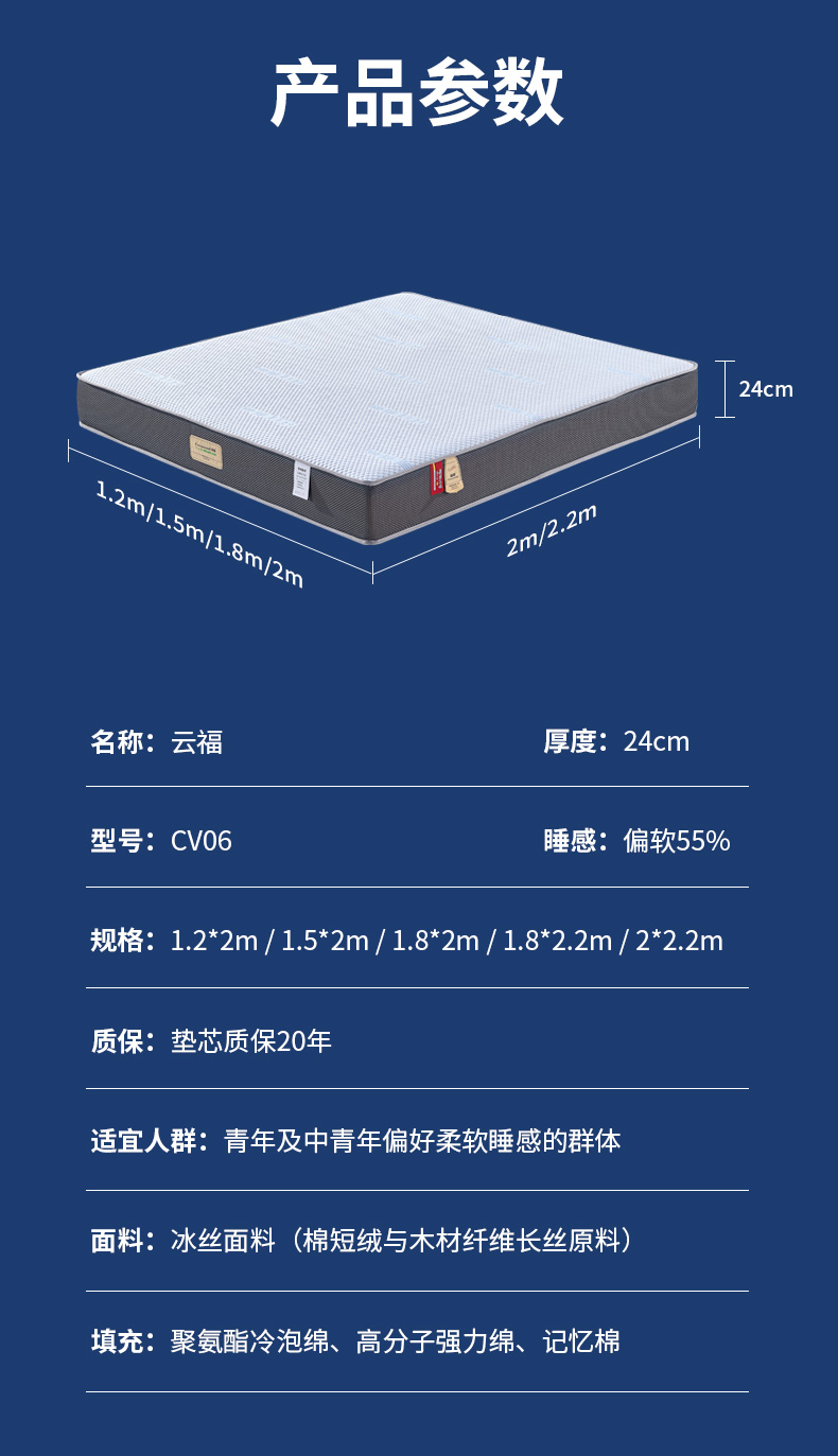 CV06云福 厚度24cm 睡感:偏軟55% 指導價:6680.00
