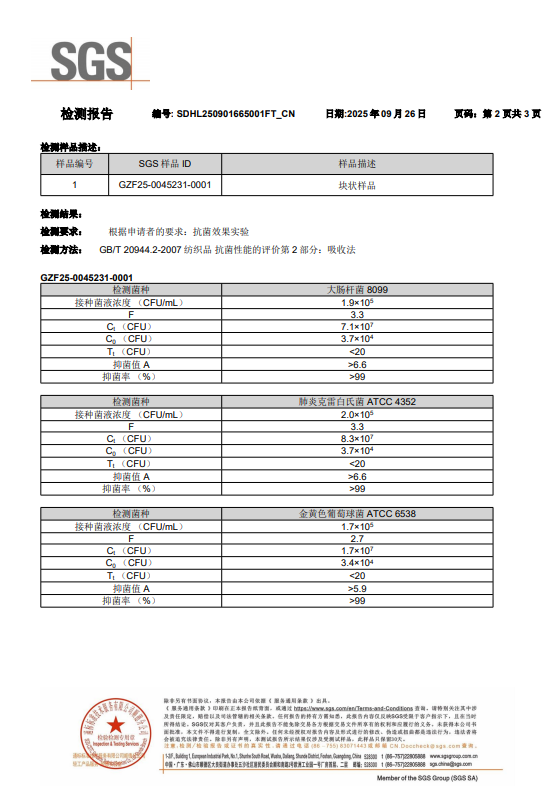 墊芯材料抗菌檢測報告